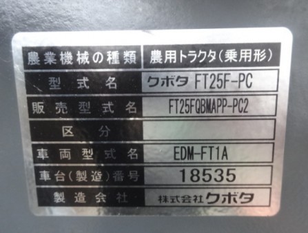 拖拉机 久保田公司 FT25F-PC - 商品号码 23465