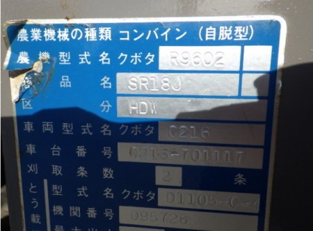 收割机 久保田公司 SR18J HDW - 商品号码 26808