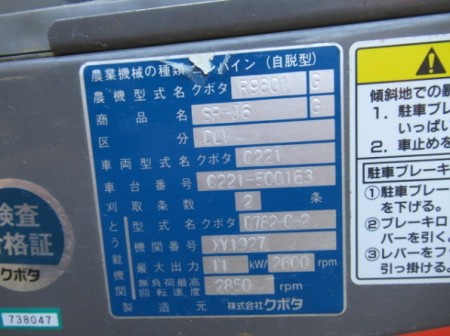 收割机 久保田公司 SR-J6 - 商品号码 26993