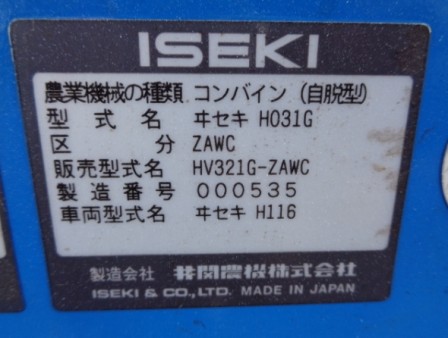 收割机 井关农机 HV321G-ZAWC - 商品号码 26996