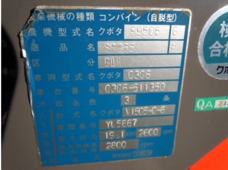 收割机 久保田公司 SR265 G DLW - 商品号码 27871