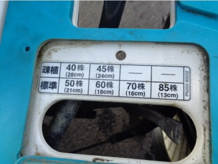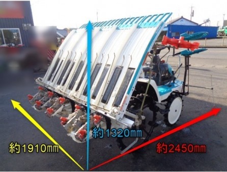 | 消息 | ◇マーカーランプにて、補修箇所がございます、点灯はしておりました。 ◇タイヤにて、小ヒビは御座いますが、 まだ十分にご使用頂ける状態であると思われます。 ●5条植え ●最大出力…9.7馬力 ●主変速…前進~N~後進(無段階変速) ●副変速…圃場作業~N~路上走行 ●油圧操作…上~N~下~植付(マーカー左・右) ●あぜごえアーム ●風車マーカー ●株間(cm):28・24・21・18・16・13 ●株数(本):40・45・50・60・70・85 ●本商品にアワー表示は御座いません。 |