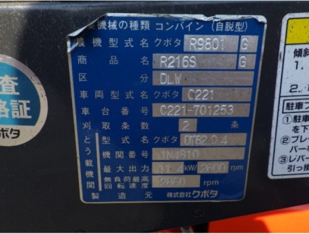 收割机 久保田公司 R216S G - 商品号码 29002
