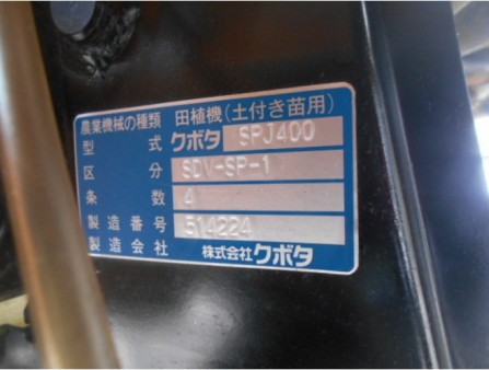 水稻插秧机 久保田公司 SPJ400 SDV-SP-1 - 商品号码 29012