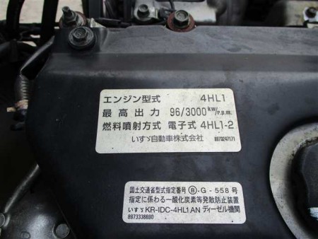| 消息 | エンジン型式:4HL1 5速マニュアル 最大積載量 :2000kg 車輌重量 :3310kg 車輌総重量 :5475kg 車検 :2020年2月 パワーゲート付き 走行距離249,980 km 排気量4,770 cc ハンドル右 トランスミッションMT 燃料ディーゼル 駆動方式 2WD <運転席エアバッグ><パワーウィンドウ><エアコン><パワーステアリング> 車両サイズ 188cm×620cm×270cm=31.47m3 |