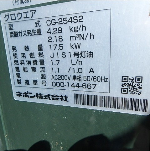 ネポン グロウエア 光合成促進機・電源:200V・燃料:灯油