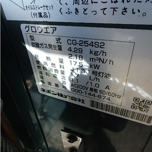 ネポン グロウエア 光合成促進機・電源:200V・燃料:灯油