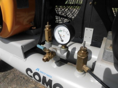 アネスト岩田 レシプロコンプレッサー◇リコイル式◇搭載エンジン:ロビン EY34・8.5馬力・ガソリン○取扱説明書付き○コング コンプレッサオイル付き