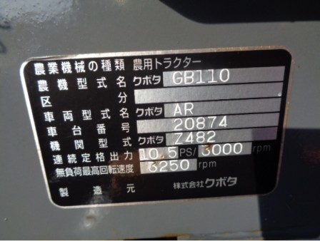 拖拉机 久保田公司 GB110 AJ - 商品号码 30082