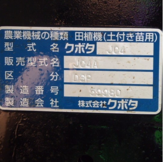 水稻插秧机 久保田公司 JC4A(DSP) - 商品号码 30395