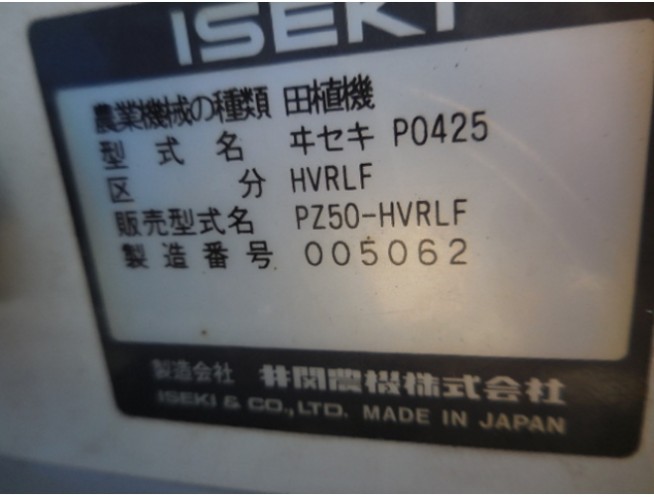 | 消息 | ◎13.5馬力(Ps) ◎施肥機付 ◎Zターン ◎Zローター ◎こまきちゃん ◎らくまきちゃんR ○主変速:Zシフト(HST) ○副変速:移動・PTO・植付 ○作業機:上下・植付 ○電動マーカー:両出・自動 ○株間:標準:50/70/60/80 疎植:43/37 |