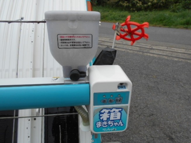 | 消息 | ★田植え同時殺虫・殺菌剤散布機 箱まきちゃん付き★ ・6条植 ・15馬力 ・ロータリー式 ・セルスタート ・整地ロータ ・苗板6枚 ・主変速:F-N-R ・副変速:圃場作業-N-路上走行 ・植付:上-下-自動 ・ほ場表面硬さ:軟 1~7 硬 ・あぜぎわクラッチ ・植付深さ:浅-深 ・苗取り量:多-少 ・株間変速:14-16-18-21-24(株間) 80-70-60-50-45(株数) |