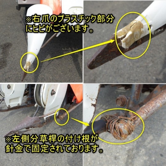 *左側分草桿の付け根が針金で固定されております。