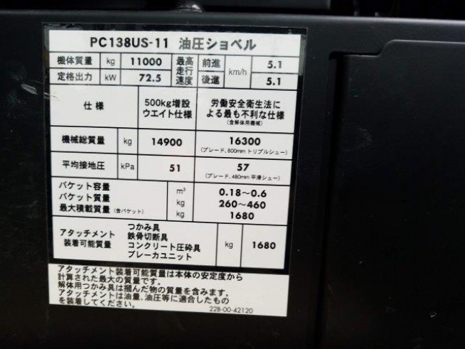 液压挖掘机 小松公司 PC138US-11 - 商品号码 32313