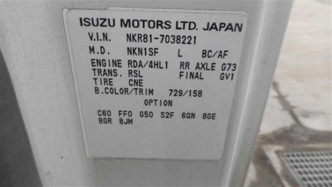 | 制造号码 | NKR81-7038*** |