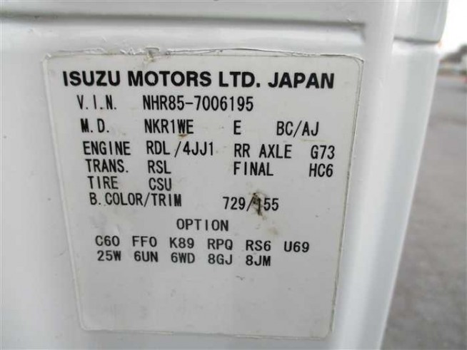 | 制造号码 | NHR85-7006*** |