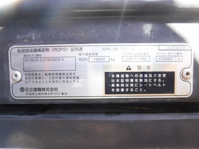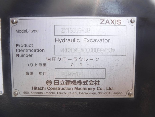 液压挖掘机 日立建机 ZX135US-5B - 商品号码 38915