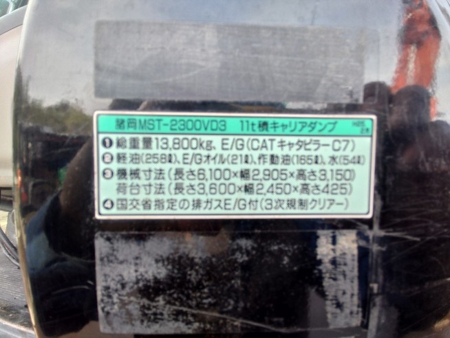 | 消息 | 重量 13800kg E/G キャタピラーC7 排ガス3次クリア 寸法 6100L×2905W×3150H 荷台寸法 3600L×2450W×425H エアコン 建機工譲渡証有り |