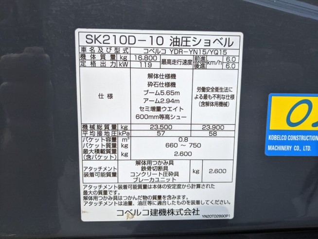 SK210D-10 信息 -