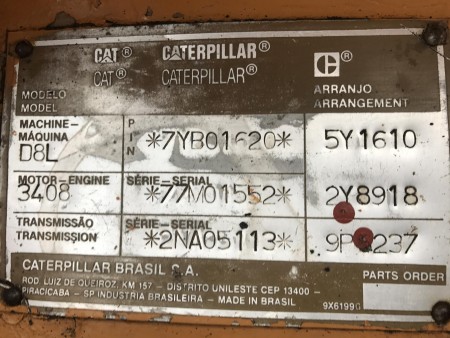 | 消息 | CAT D8L,: Engine Caterpillar, 3408, 249 kW, Erops cabin, U-tilt blade, Lever steering, 80% u.c., pads 960mm, Winch, Caterpillar TA inspection available; everything in good order, In very good and very clean condition |