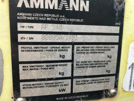 | 消息 | AMMANN AP240,: Engine Cummins, B4.5, 74 kW, Erops cabin, Air conditioning, 11.00-20 Compactor smooth / Mitas 4 wheels on front axle, 4 wheels on rear axle, Water sprinkler system front & rear, EPA, In good and clean condition |