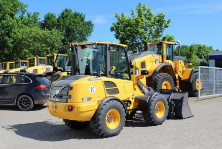 bucket 0,85 cbm, quick coupler, forks, 3. function, Dunlop 405/70R18, brusher adjustment, hand inch valve