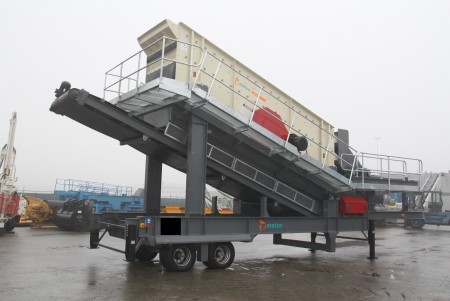 | 消息 | Unused Portable wheeled screening plant, Metso SH 6x20 3 deck screen, heavy duty Delta manufacturing tandem axle chassis, 1.2 mtr under screen conveyor, full galvinised catwalks on 3 sides, rail mounted chute configuration, 30KW electric drive, chassis mounted control panel with extra switchgear and starters for auxiliary conveyors, up to 800 t/ph capacity. Auxillary stockpilling conveyors from 10 - 18 Mtr. long available at extra cost. |