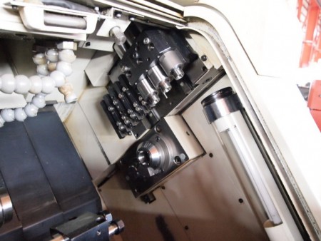 MELDAS 10角タレット 背面スピンドル付 クロス方向回転工具3本 外径バイト5本取付可能 搬出コンベア イクラ2.5m仕様/S162 自動消火装置付 ロータリーガイドブッシュ