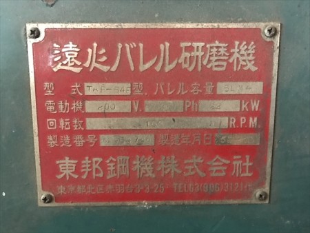 | Description | 東邦鋼機 遠心バレル |