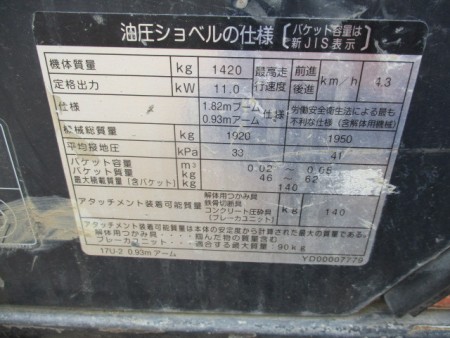 | Description | エンジン クボタ 標準バケット容量0.044m3 |