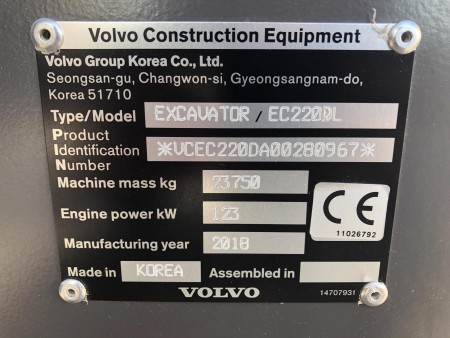 | Model | VOLVO EC220D L |