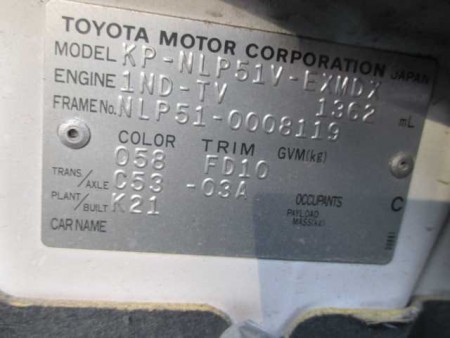 Other Vihicles TOYOTA KP-NLP51V - Ref No 26942