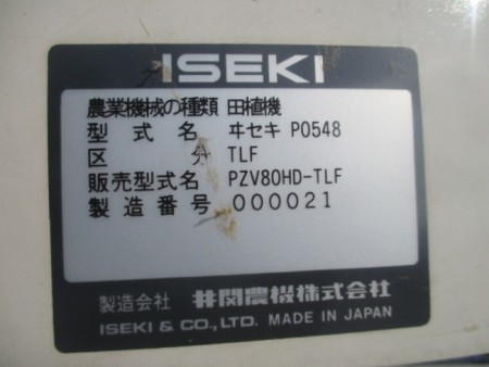 Rice transplanter ISEKI PZV80HD-TLF - Ref No 28645