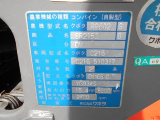 Combine Kubota SR215J - Ref No 31141