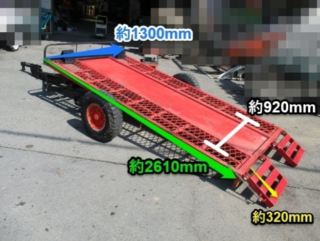 | Description | △特有のサビ汚れや塗装ハゲ、洗って落としきれていない汚れがございます。 また、再塗装跡や塗装ムラなどございます。 サビ汚れなどございますがサビによる腐食などは見受けられません。 ■最大積載量:1800kg ■荷台寸法などは写真にてご確認下さい。 ★慣性ブレーキ・駐車ブレーキ付!! ■タイヤ:オーツ 6.00-9 タイヤ一本の幅:約150mm タイヤ中心~中心まで:約1500mm △タイヤにヒビや切れございますが、ヘリはほぼ見受けられません。 落としきれいていない汚れがございますが、ご使用に差し支える程の大きな損傷は見受けられません。 △現状でのパンク等は見受けられませんが、実際に重量物を積載しての強度確認は行っておりません。 |