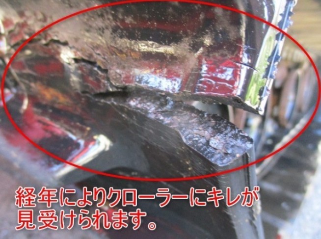 ▲経年により左右クローラー共に数か所キレが見受けられます。