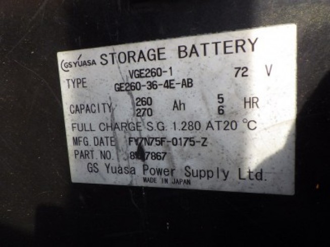 | Description | MAST:V3.015 FORK LONG:1220mm Battery:GS YUASA Battery Year:2009年 Capacity:260Ah/48v |