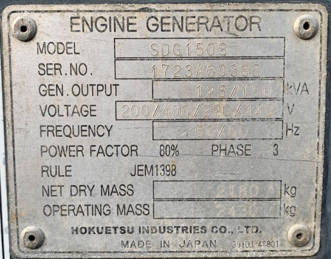 Generators HOKUETSU INDUSTRIES SDGS150S - Ref No 36451