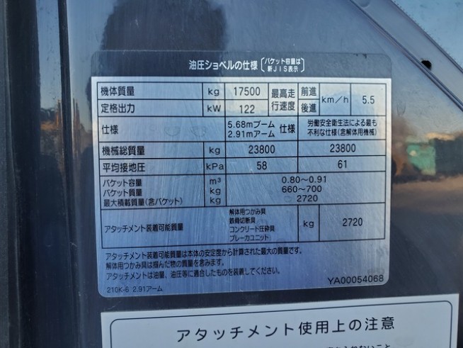| Description | 日立 油圧ショベル ZX210K-6 5本配管付 4320時間 オカダ マグネット式小割機付き |