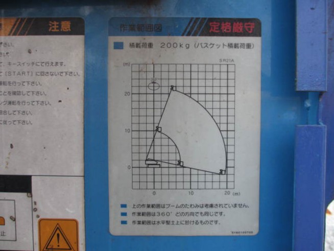 | Description | クローラタイプ, リフティングプラットフォーム, 最大高さ21m, 最大積載重量200kg, 排ガス2次規制 |