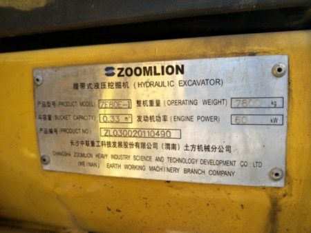 Excavators ZOOMLION ZE80E-I - Ref No 4901
