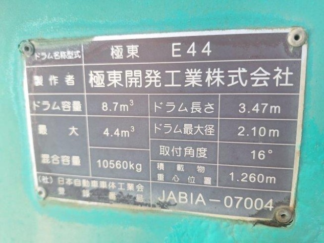 279,788km 極東 ドラム容量8.7㎥ 最大混合容量4.4㎥ |