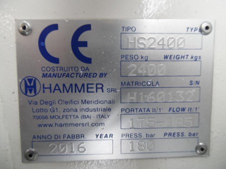 | Description | HAMMER WORKING WEIGHT Kg 2400, HEIGHT WITH STANDARD TOOL mm 3200, TOOL DIAMETER mm 150, STANDARD TOOL LENGTH mm 1300, REQUIRED OIL FLOW Lit./min 180 – 205, BLOWS PER MINUTE C/min, 350 – 650, HAMMER OPERATING PRESSURE bar 175, IMPACT ENERGY joule 6100, CARRIER WEIGHT ton 27 – 35, INNER DIAMETER OF DELIVERY PIPE mm 25, INNER DIAMETER OF RETURN PIPE mm 25, LOSS OF CHARGE ALLOWED INTO THE RETURN CIRCUIT bar 25 |