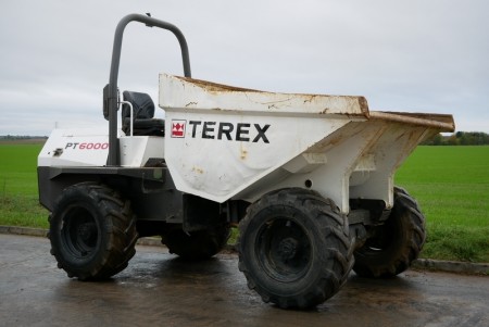 | Description | Terex PT6000 site dumper with 6 ton pay load , foldable rops bar . Cummins engine |