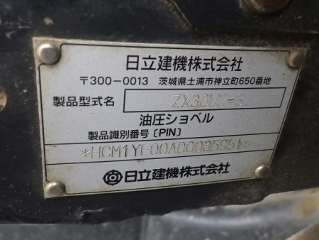 ミニユンボ(ミニ油圧ショベル) 日立建機 ZX30UR-3 - 商品番号 10135