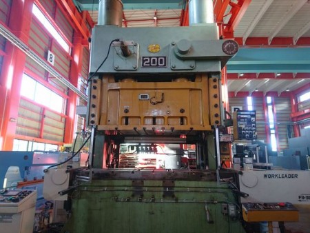 200t ストローク数30-50 ストローク長さ203.2 ダイハイト450.8 スライド調節量100 スライド下面寸法1800×650 ボルスター寸法2400×800