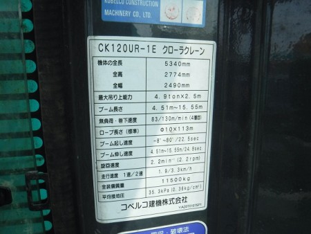 クレーン コベルコ CK120UR-1E - 商品番号 15806