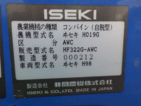 コンバイン 井関農機 HF-322G -AWC - 商品番号 24356