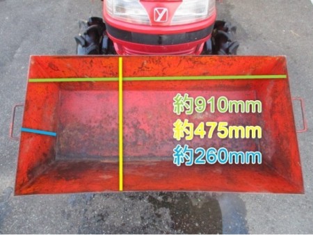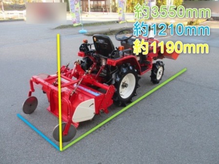 ○13馬力 ○ロータリー型式:RSZ110 ○耕運幅:約1100mm ○爪:7分 ○バケット付:寸法サイズは写真をご確認下さい。 ※ミラーにワレが見受けられます。 ※右の前輪タイヤに若干のカケが見受けられます。 ※ロータリーの後ろのカバーが両側ともに欠品しております。