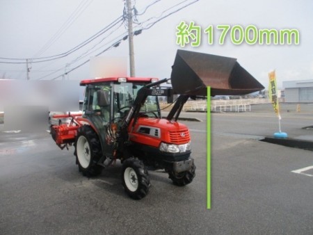 ○27馬力 ○フロントローダー:上昇高さ・約1700mm 持上制限重量・250㎏ ○PTO逆転 ○自動水平 ○倍速ターン ○パワステ ○耕運幅:約1600mm ○AD切替 ○モンロー ○キャビン ○エアコン:冷房・暖房 ○ラジカセ ○ワンタッチ耕運 ○MCオート ※左右前輪タイヤに若干のカケが見受けられます。